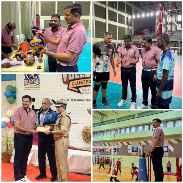 During the championship, he was entrusted with important officiating responsibilities and he served as the First Referee for several league matches. He also officiated the Women’s Semi-Final match between SSB and CRPF and the Men’s Bronze Medal match between Punjab Police and Tamil Nadu Police. In volleyball officiating, the refereeing squad consists of the First Referee, Second Referee, Reserve Referee, Scorer, Assistant Scorer, and four Line Judges, with the First Referee acting as the head of the entire refereeing panel responsible for the conduct of the match.